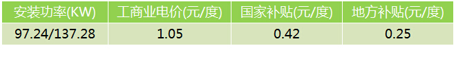 系統(tǒng)25度傾角設置時,采用鍍鋅鋼支架,系統(tǒng)安裝組件374塊,配置30KW逆變器3臺,并網(wǎng)接入柜1臺,安裝容量為97.24KW。市場單價約為8.2元/W,項目總價約為79.74萬元。