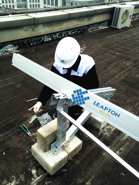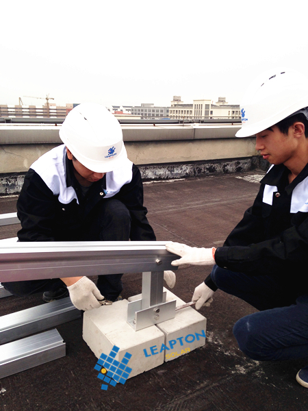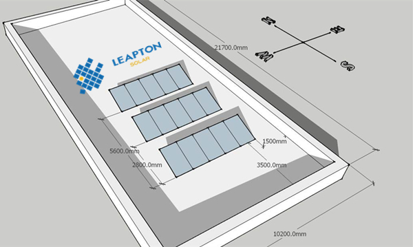 屋頂情況:商業(yè)辦公樓,混凝土平屋頂。屋頂不能打孔,采用壓載式支架,傾角20度。