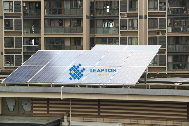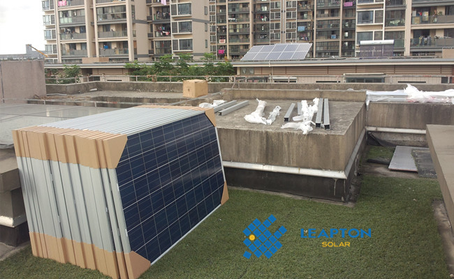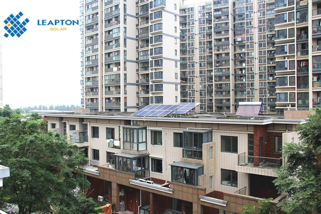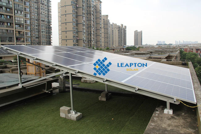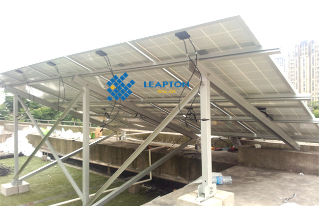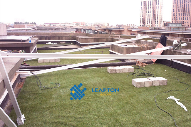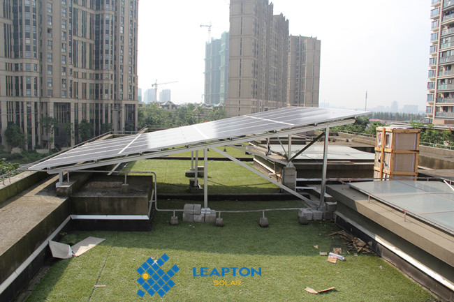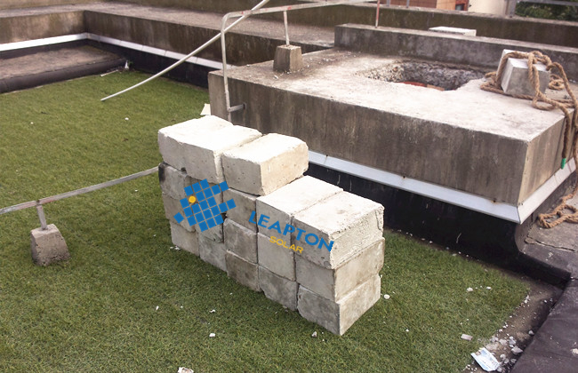 屋頂情況:連棟別墅,混凝土平屋頂。屋頂情況較為復(fù)雜,可采用壓載式支架,傾角10度。安裝250W多晶組件20塊,功率5.0KW。