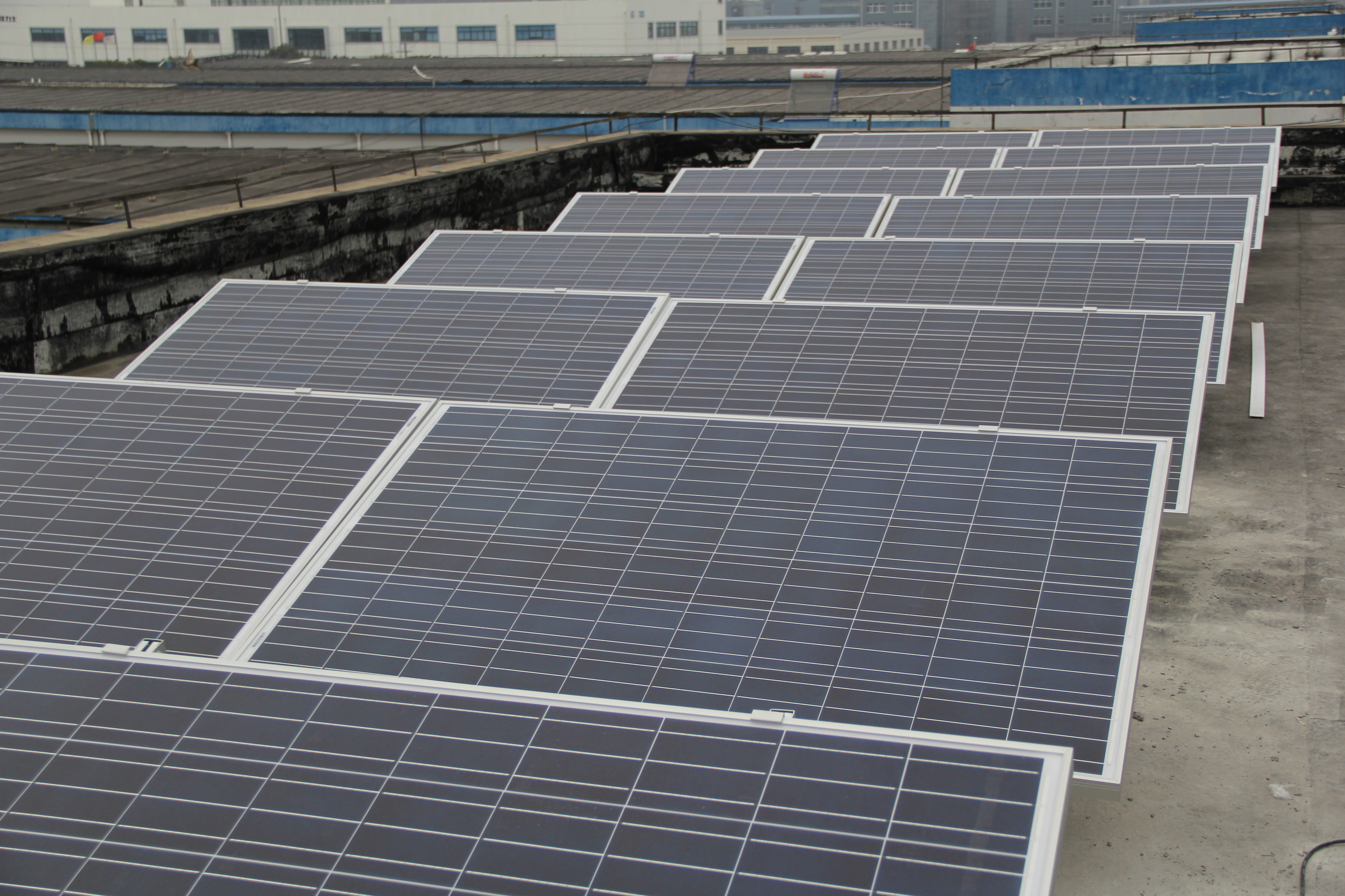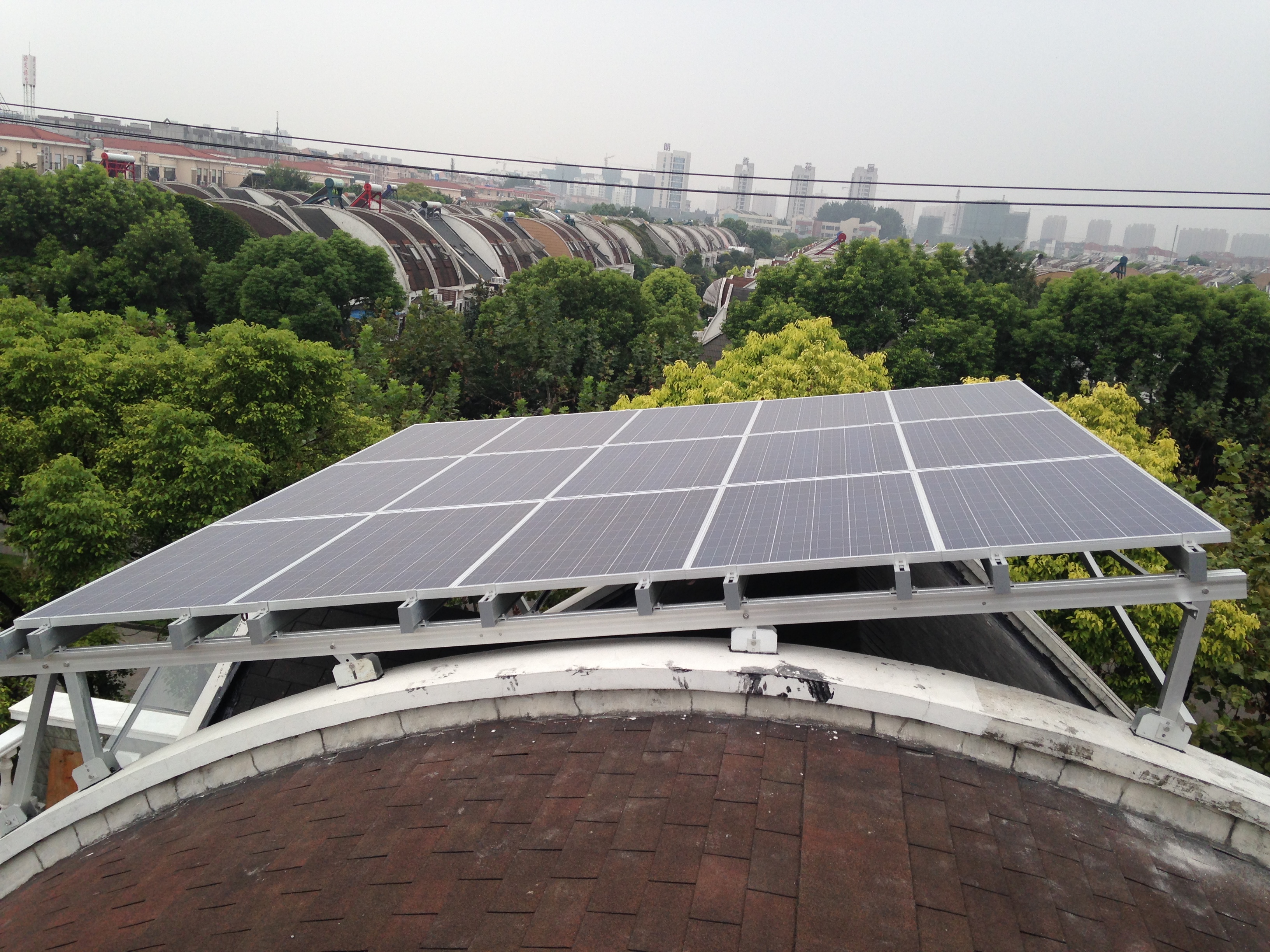 ● 安裝15塊250Wp多晶硅組件,支架傾角15度。