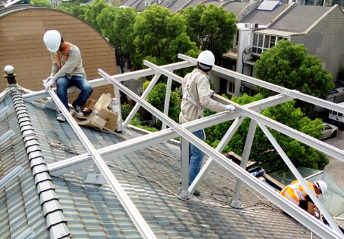 上海寶山錦秋花園別墅有多種屋頂結構,本期案例為斜瓦屋頂,采用的是磁瓦掛鉤支架,組建沿屋面平鋪安裝。