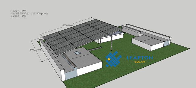 屋頂情況:連棟別墅,混凝土平屋頂。屋頂情況較為復(fù)雜,可采用壓載式支架,傾角10度。安裝250W多晶組件20塊,功率5.0KW。